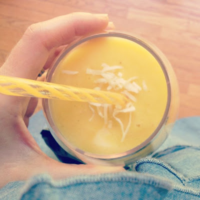 School's out for summer! My intention for this summer is to try as many new smoothie recipes as possible.  Got one you love?  Send it my way.  This one happens to be mango coconut.